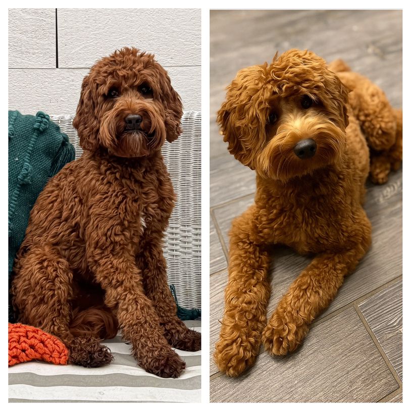 Rosie and Fronk have honeymooned! If you like redheads this is the litter for you! Rosie is the perfect combo of sweet and cuddly and an absolute joy to have around. Fronk is the happiest, friendliest funny boy. Puppies will be under 30lbs at maturity. Puppies are due 11/24/25 and will go home the end of January 2026. Master list open.