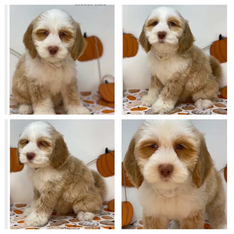 Gretsch is a beautiful caramel tuxedo boy. He is expected to weigh 30-40lbs at maturity. He is an outgoing boy who is as sweet as can be. He is ok playing by himself and would also make a great companion for another dog. He also loves human attention. He can leave us on 10/26/25. $2500.00